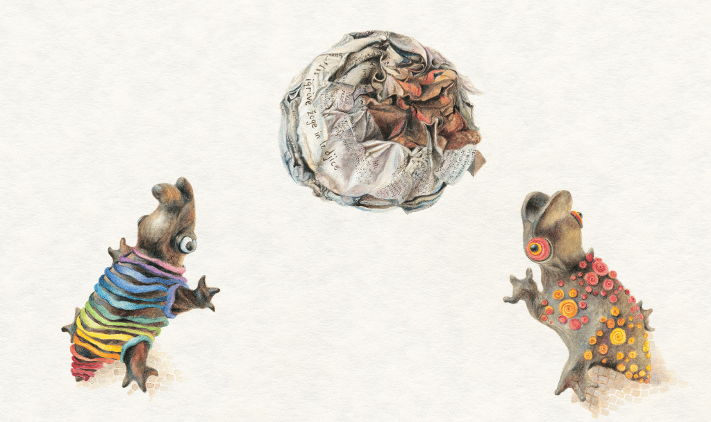 Ilustracije predstavljajo posvetilo časopisni kulturi. Žal postaja časopis kot tiskani medij v digitalni dobi vse bolj ogrožen. Mnogi prebirajo novice le še na spletu. V večini sodobnih družin, v katerih odraščajo današnji otroci, niso več naročeni na dnevno časopisje. Časopis se v papirnati obliki tako vse redkeje znajde v vsakdanjosti najmlajših.